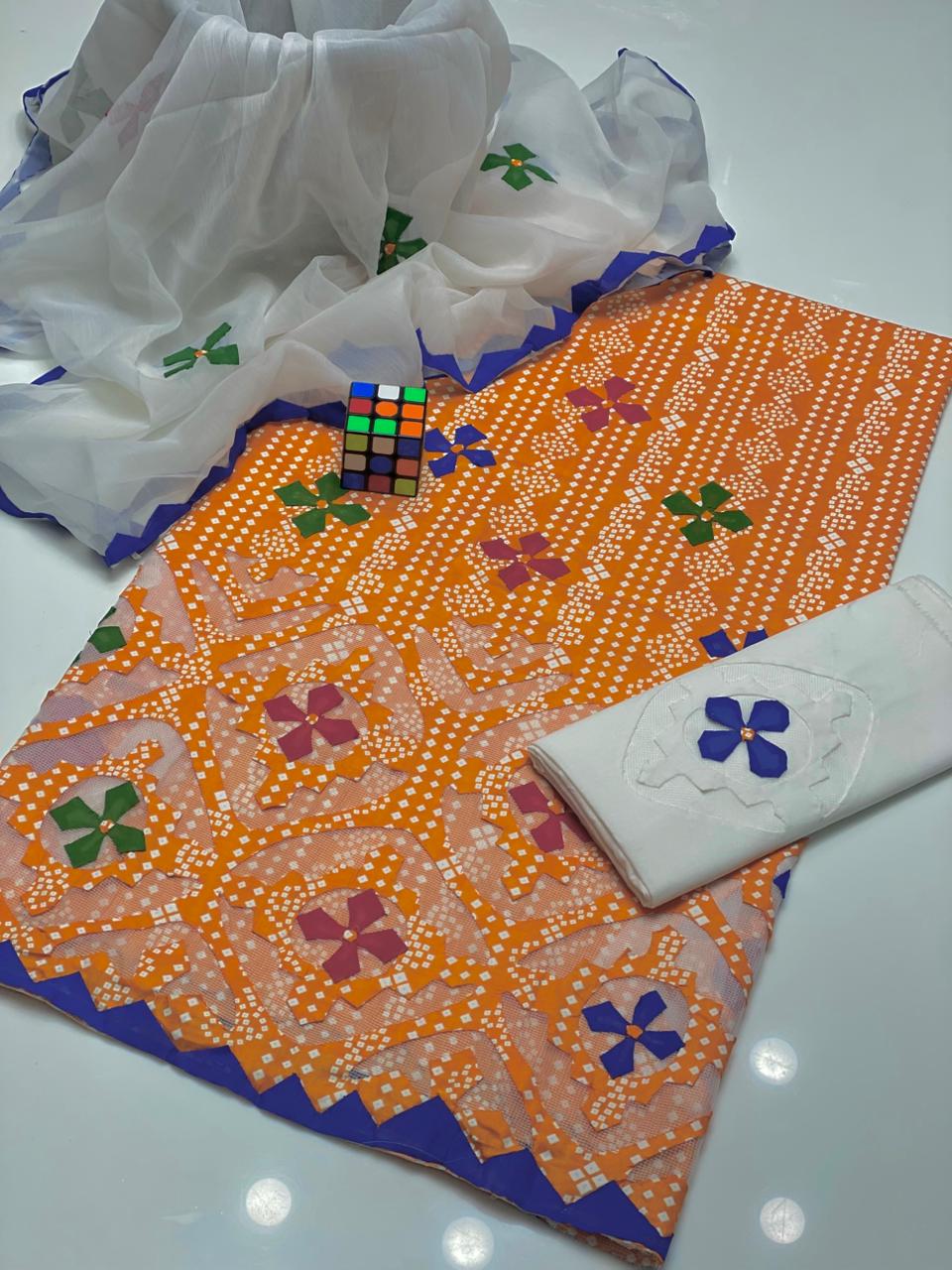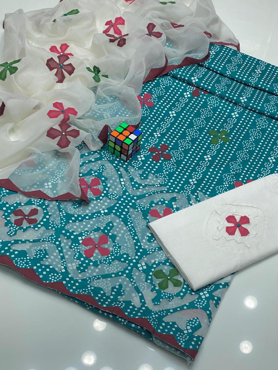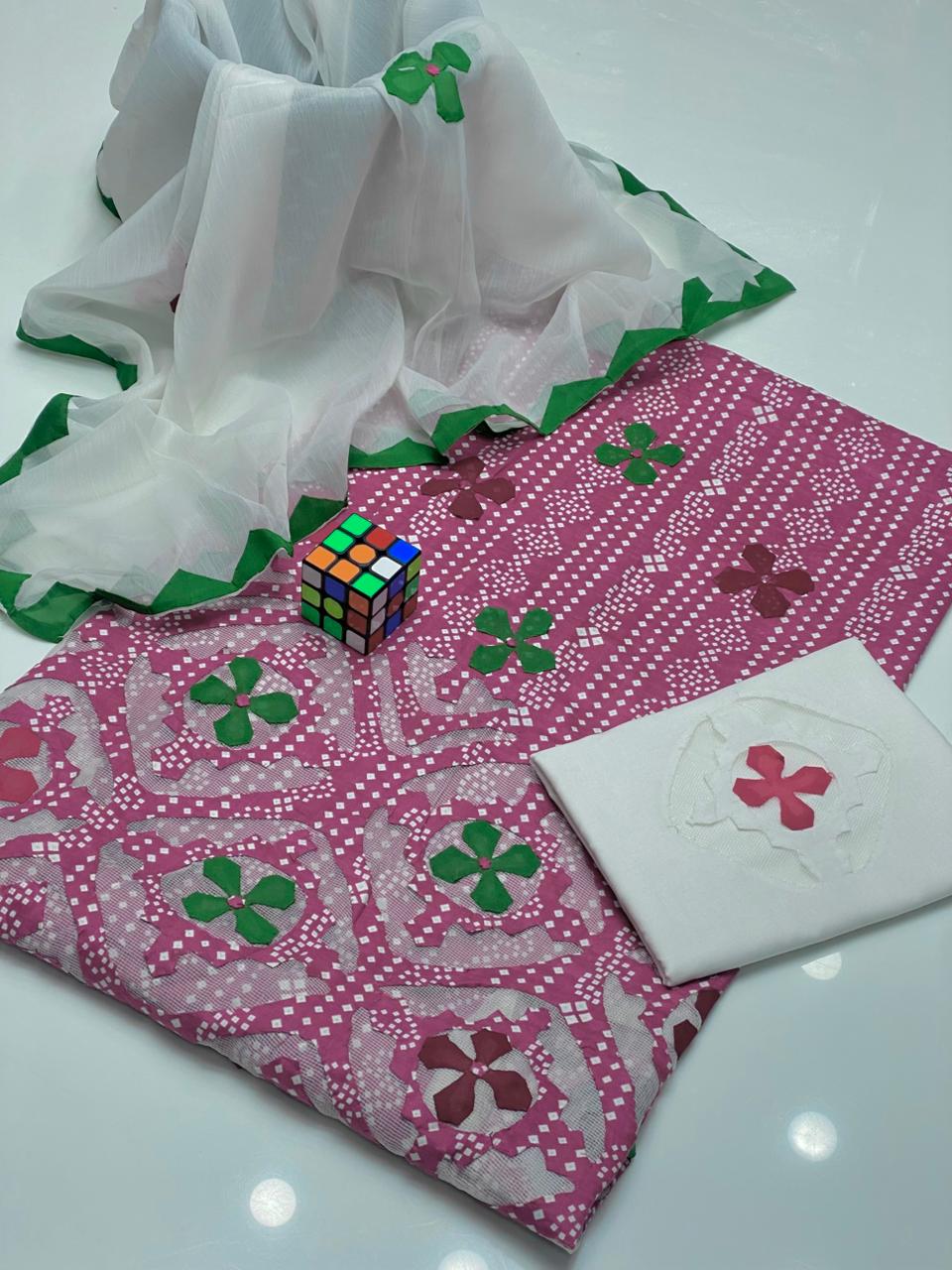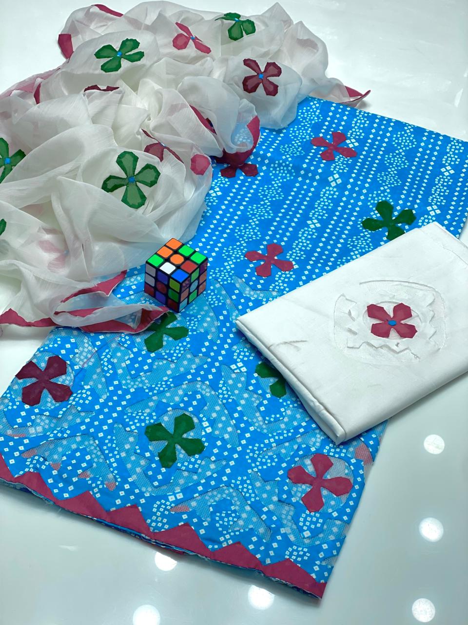 Beautiful Applique Work With Chunri Prints..